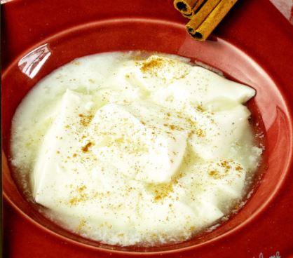 Les oeufs au lait, le millet cuit dans du lait aromatisé à la vanille.